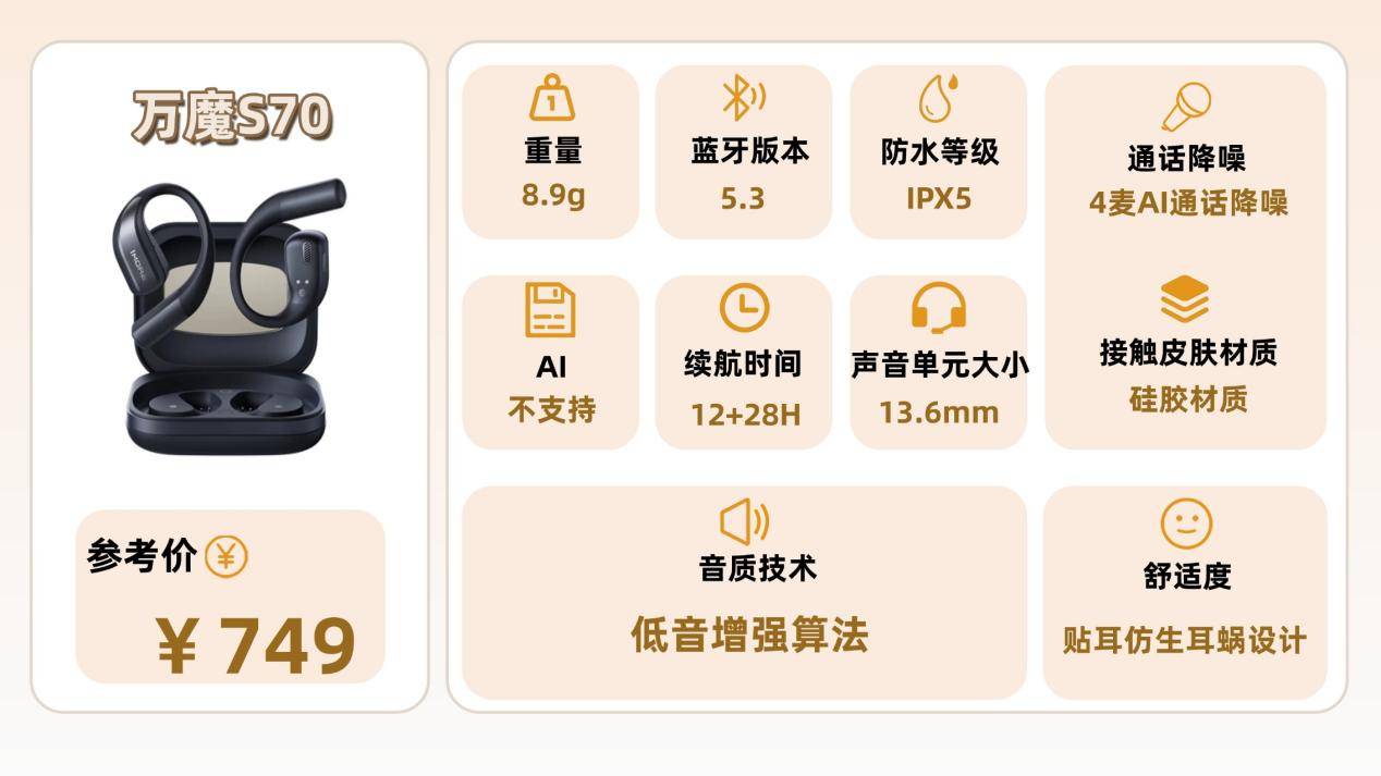 开放式耳机推荐七:万 魔S70(¥749)