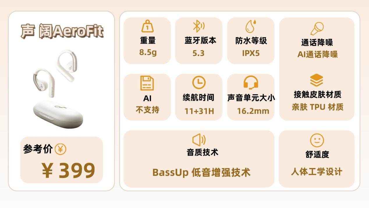 开放式耳机推荐九:声 阔AeroFit(¥399)