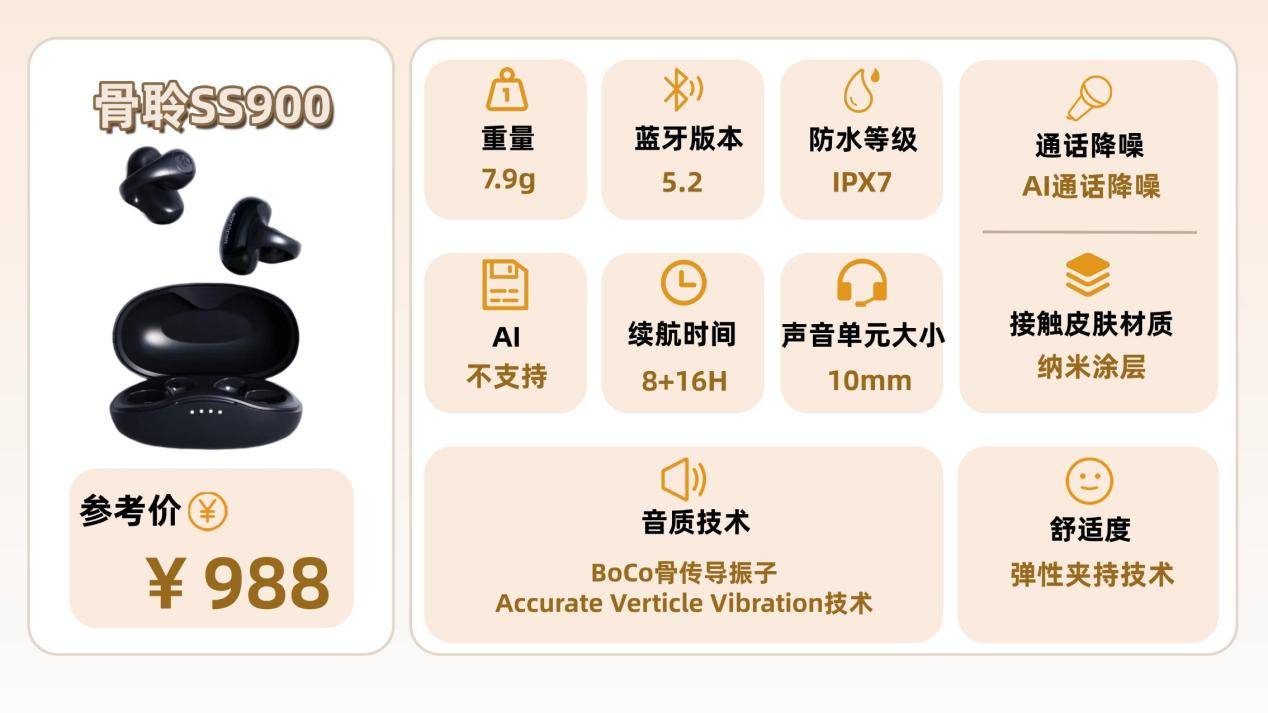 开放式耳机推荐十:骨 聆SS900(¥988)